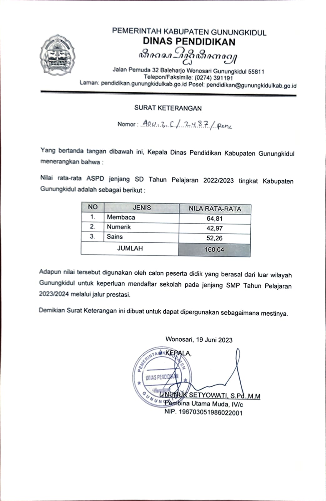 NILAI RATA RATA ASPD SISWA se-KABUPATEN GUNUNGKIDUL